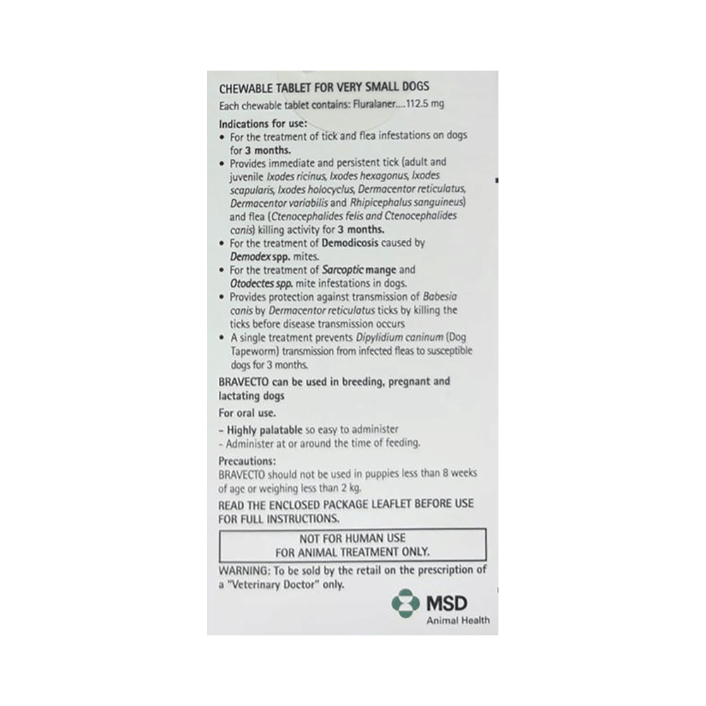 Bravecto 112.5mg Pet Chewable Tablet (For>2-4.5 kg)