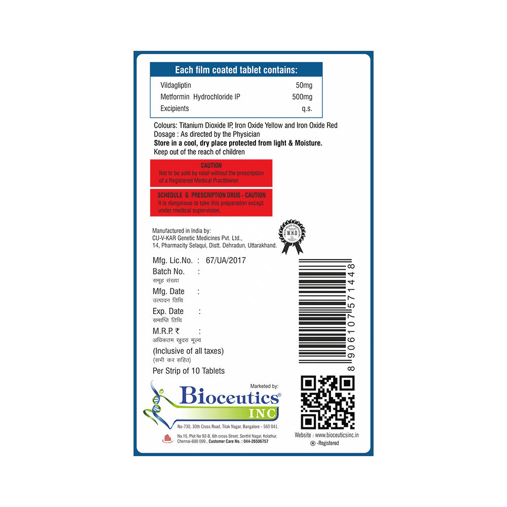 Vildaglip M 500mg/50mg Tablet