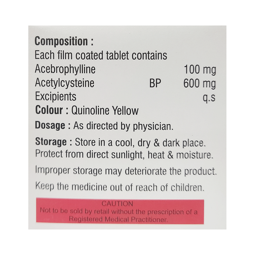 Salt Composition: Acebrophylline (100mg) + Acetylcysteine (600mg)