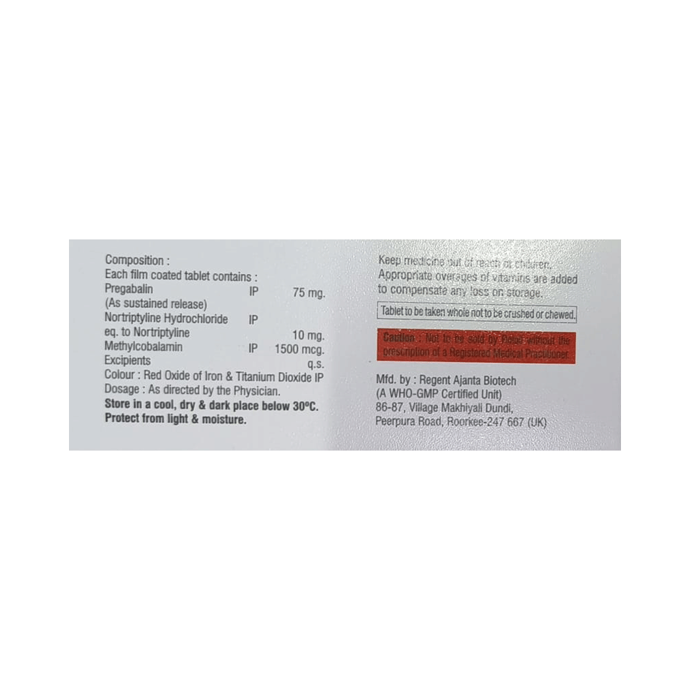 Salt Composition: Pregabalin (75mg) + Nortriptyline (10mg) + Methylcobalamin (1500mcg)