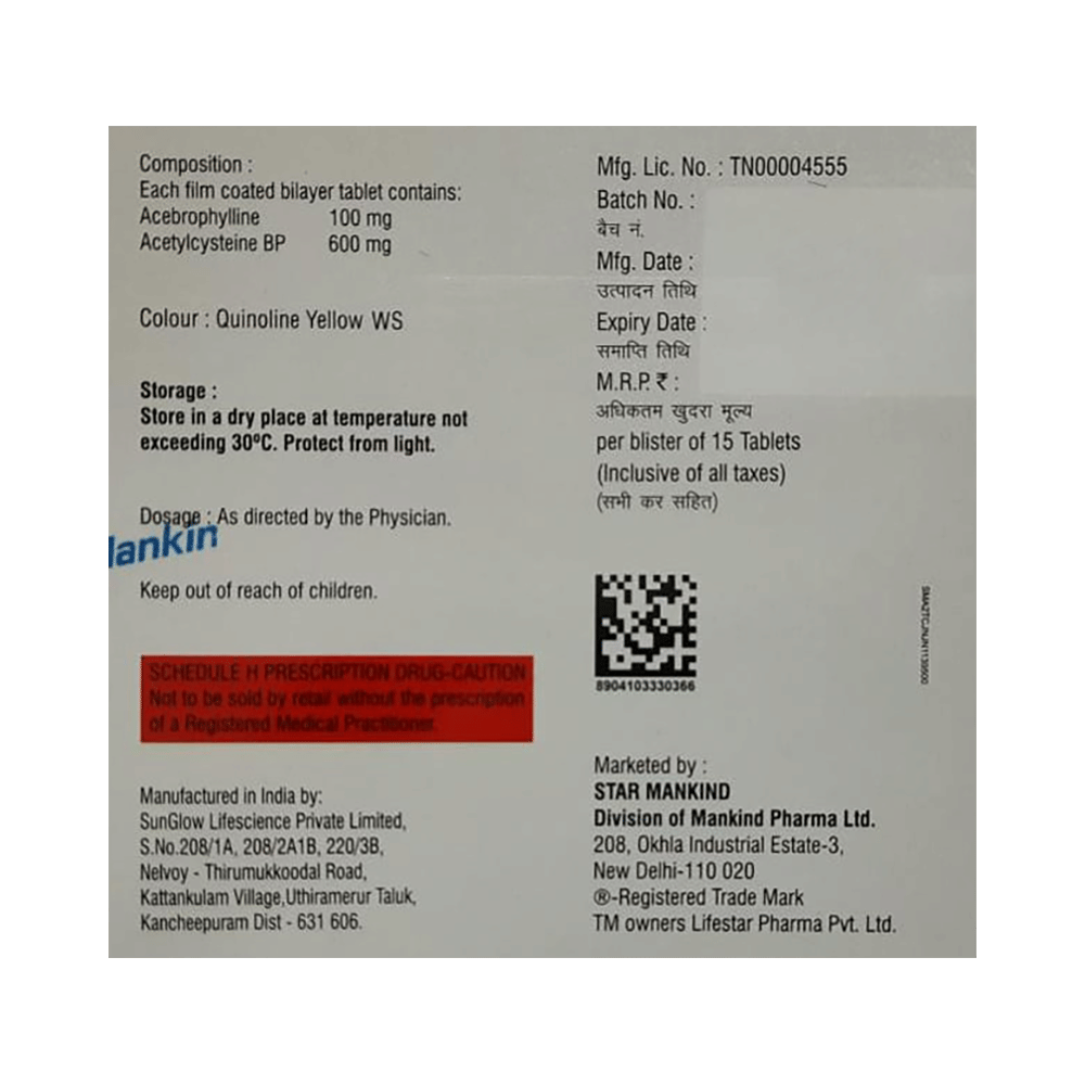 Salt Composition: Acebrophylline (100mg) + Acetylcysteine (600mg)