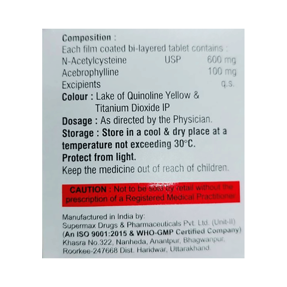 Salt Composition: Acebrophylline (100mg) + Acetylcysteine (600mg)