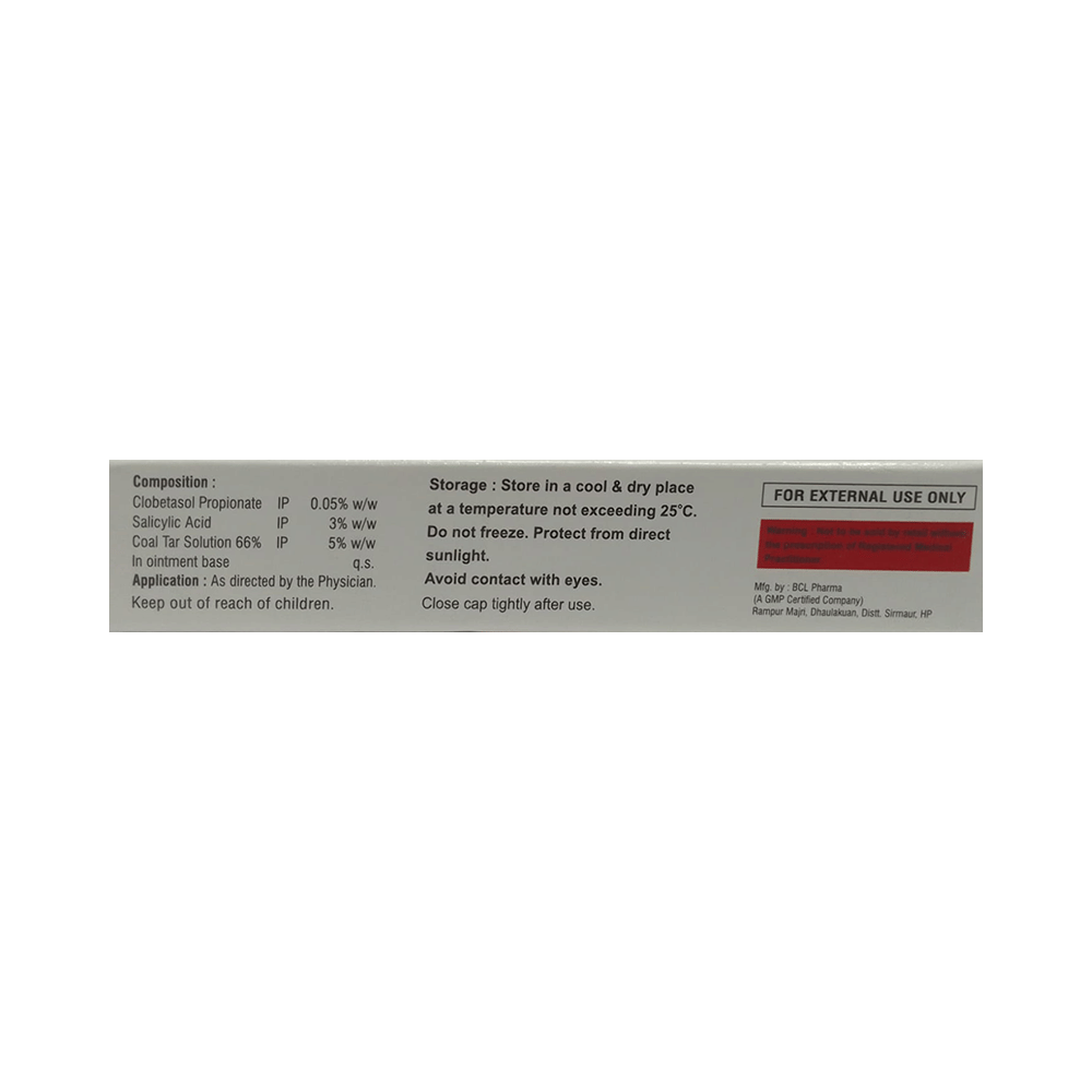 Salt Composition: Clobetasol (0.05% w/w) + Salicylic Acid (3% w/w) + Coal Tar (5% w/w)