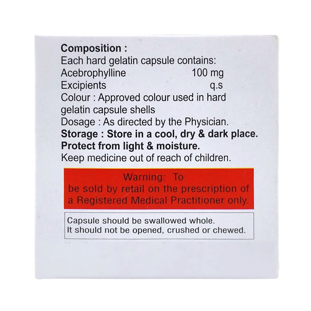 Abrovax 100 Capsule is used to treat and prevent symptoms of asthma, bronchitis, and chronic obstructive pulmonary disorder (a lung disorder in which airflow to the lung is blocked). It helps relax the muscles of the air passages, thus widening them and making them easier to breathe. Abrovax 100 Capsule can be taken with the food in the evening. Take it at the same time every day to get the most benefit. The dose and how often you take it depends on what you take it for. Your doctor will decide how much you need to improve your symptoms. Take this medicine for as long as it is prescribed for you. Do not miss even a single dose. If missed, take it as soon as you remember, or skip the missed dose and continue with regular dosing if it's almost time for the next dose. It does not work immediately or prevent the already-started breathing trouble; hence, always carry your medical inhaler for an emergency.The most common side effects of this medicine include abdominal discomfort, abdominal distension, vomiting, abdominal pain, diarrhea, constipation, and heartburn. If these bother you or appear serious, let your doctor know. There may be ways of reducing or preventing them. Generally, it is advised not to consume alcohol or do not smoke while on treatment.Before taking this medicine, tell your doctor if you have kidney, liver, or heart-related disease. Your doctor should also know about all other medicines you are taking, as many may make this medicine less effective or change its effect. Before starting the treatment, inform your doctor if you are pregnant or breastfeeding.