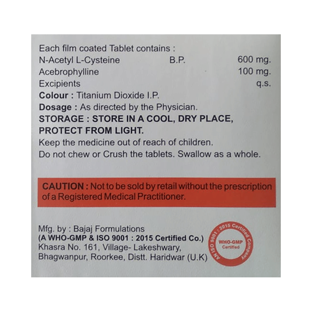 Salt Composition: Acebrophylline (100mg) + Acetylcysteine (600mg)