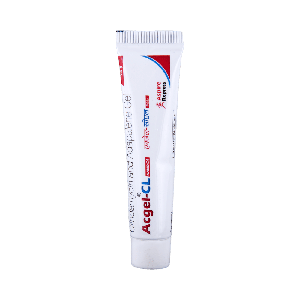 Acgel-CL Nano Gel is a combination of two medicines used in the treatment of acne. It minimizes oil production and helps to reduce inflammation. It also kills acne-causing microorganisms and prevents infection. This helps prevent pimples, blackheads, and whiteheads on the skin. Acgel-CL Nano Gel is only meant for external use and should be used as advised by your doctor. You should normally wash and dry the affected area before applying a thin layer of the medicine. It should not be applied to broken or damaged skin.Avoid any contact with your eyes, nose, or mouth. Rinse it off with water if you accidentally get it in these areas. It may take several weeks for your symptoms to improve, but you should keep using this medicine regularly. Do not stop using it as soon as your acne starts to get better. Ask your doctor when you should stop treatment.Side effects like minor itching, burning, or redness of the skin, and oily skin may be seen in some people. These are usually temporary and resolve on their own. Consult your doctor if they bother you or do not go away.Inform your doctor if you have any problems with your bowels (intestines) or if you are using any other medicines to treat skin conditions. Consult your doctor about using this medicine if you are pregnant or breastfeeding.