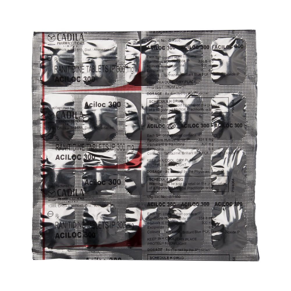 Aciloc 300 Tablet is a histamine H2 receptor blocker that reduces the amount of acid made in the stomach. It relieves acid-related indigestion and heartburn.