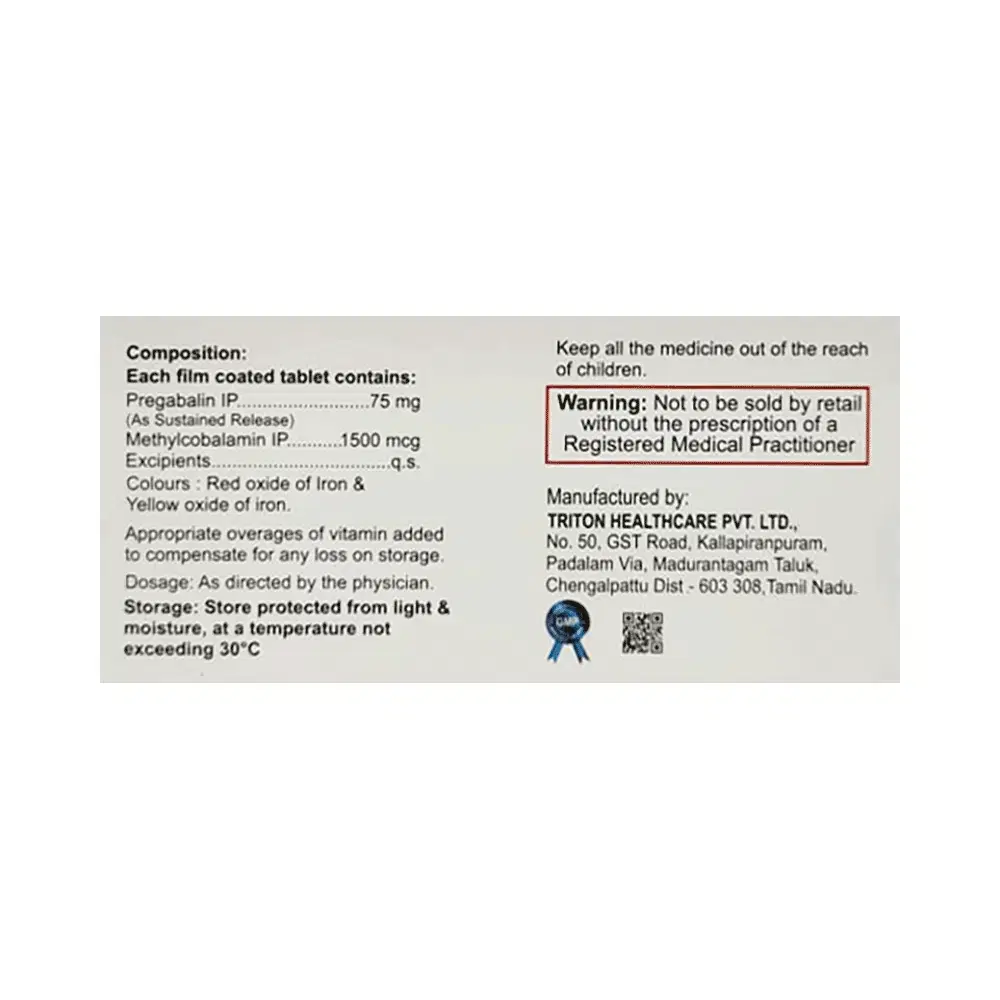 Salt Composition: Methylcobalamin (1500mcg) + Pregabalin (75mg)
