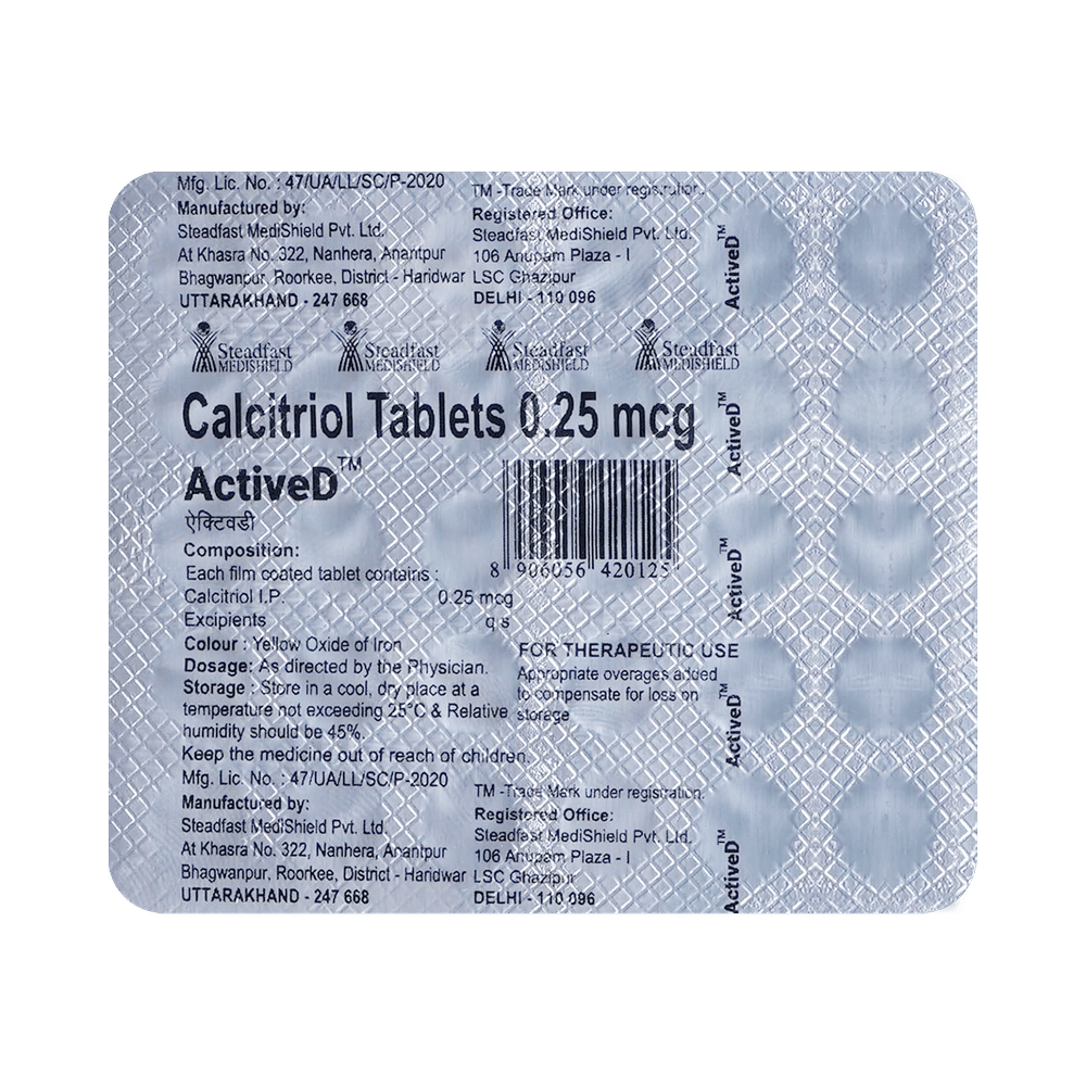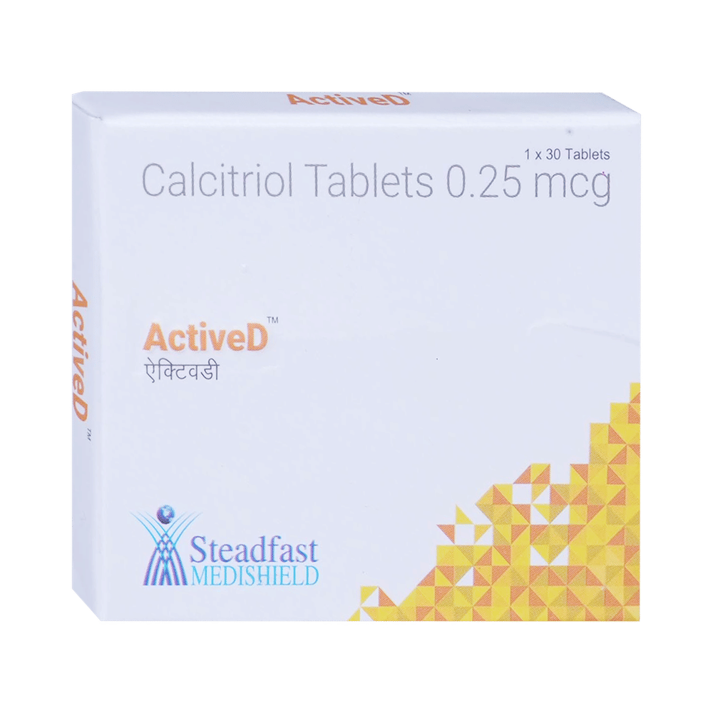 ActiveD Tablet is the active form of vitamin D. It increases the levels of vitamin D in your blood which in turn raises calcium levels in the blood by helping in the absorption of more calcium from your intestine. This way it helps in the treatment of calcium deficiency and metabolic bone disease. ActiveD Tablet is also beneficial in increasing muscle mass, helps in the prevention and treatment of hypocalcemia, as well as helps in reducing fatigue and muscular pains. It boosts immunity and increases body resistance against infection.This medicine is to be taken in the dosage as advised by the doctor. Consult your doctor if you plan to take any other form of vitamin D along with this medicine.This medicine is generally tolerated with little or no side effects. In patients with kidney disease patients, dose adjustment may be required. Discussed with your doctor. Avoid or limit the consumption of alcohol while on treatment with this medicine.