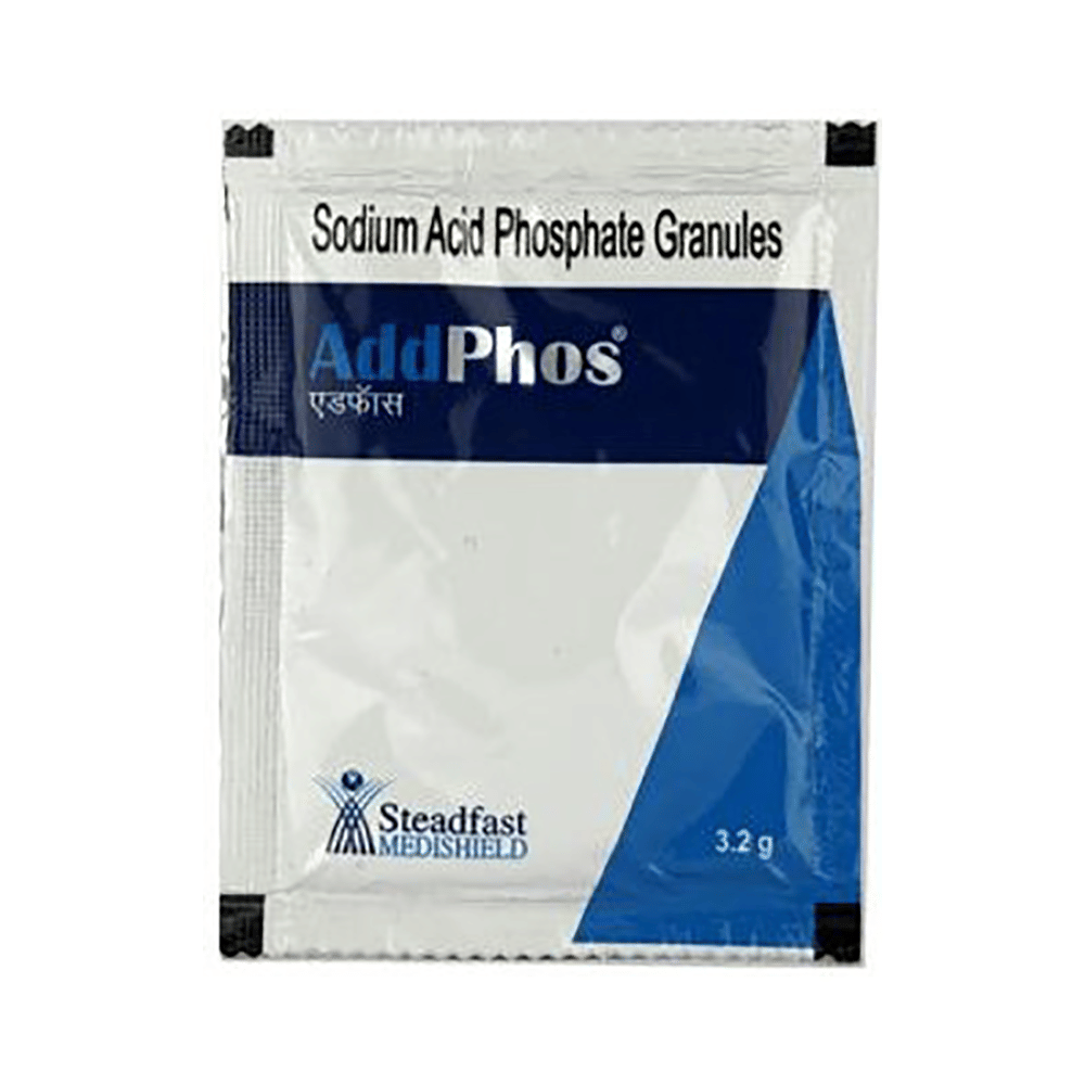 Addphos Granules is a medicine used to treat high calcium levels in the blood and hyperparathyroidism. It works by binding with calcium which makes their level go back to normal. Addphos Granules can be taken with or without food. It should be taken exactly as prescribed by your doctor. Your doctor will decide the dose and how often you should take them. You should take this medicine regularly to get the most benefit from it. Do not stop taking the medicine even if you feel better unless the doctor tells you so.The medicine is generally well tolerated, however, it may cause nausea and diarrhea in some people. Let your doctor know if any of these side effects do not go away with time or get worse. Before using this medicine, inform your doctor if you have any problems with your kidney or liver. You should also tell your doctor all the other medications you are taking.