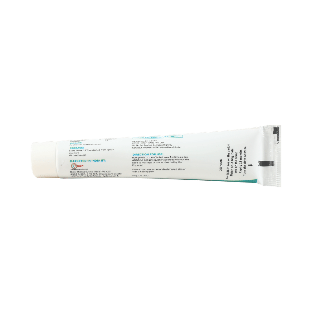 Adgaba Gel is used for the treatment of neuropathic pain. It works by cooling the skin then warming it up. This cooling and warming up action blocks the pain signal transmission through nerves to reach the brain and decreases the pain sensation. Adgaba Gel is for external use only. You should use it in the dose and duration as advised by your doctor. You must wash your hands thoroughly before and after applying this medicine. This medicine should be used regularly to get the most benefit from it. Do not stop using it until you have finished the complete course, even when you feel better.The most common side effects of this medicine include application site reactions like burning, irritation, itching, and redness. These are usually mild but let your doctor know if they bother you or last more than a few days. Avoid direct contact with eyes, nose, or mouth. If accidental exposure occurs, rinse immediately with plenty of water. Before using this medicine inform your doctor if you are pregnant.