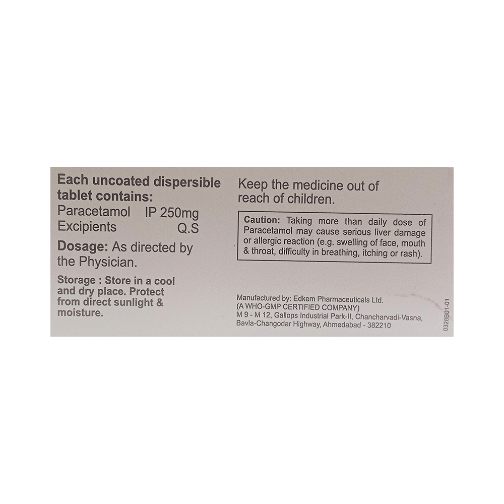Admol 250 DT Tablet is a widely prescribed medicine that helps to ease pain and bring down high body temperature (fever). In children, it treats conditions like headache, toothache, body ache, fever, and common cold. Admol 250 DT Tablet is given orally preferably at a fixed time every day. Though this medicine can be taken before or after food, it is best given after food as it can irritate the inner lining of an empty stomach. The dose and duration will depend upon your child’s age, body weight, and severity of the infection, so stick to the dose, time, and way prescribed by your child’s doctor. If your child vomits within 30 minutes of taking the medicine, let the child calm down and repeat the same dose. Redosing is not recommended if your child gets sick more than 30 minutes after taking a dose.Do not give your child Admol 250 DT Tablet along with other medicines (many cold and flu medicines and other painkillers) that contain paracetamol, as this may result in overdosing and cause dangerous side effects such as hepatotoxicity (liver damage). Always check the ingredients of any other medicines before giving them to your child in combination with this medicine.Generally, this medicine is well-tolerated by the children. However, temporary side effects such as indigestion, nausea, vomiting, and difficulty in sleeping, may occur in some children. Consult your doctor in case these episodes become bothersome for your child.This medicine is often considered safe and effective but may not be suitable for everybody. Inform your doctor if your child is undergoing treatment for any blood-related disorder, is allergic to any medicinal compound, or has any birth defects, liver impairment, or kidney dysfunction. This will help your child’s doctor evaluate the dose and suitability of this medicine in a better way.