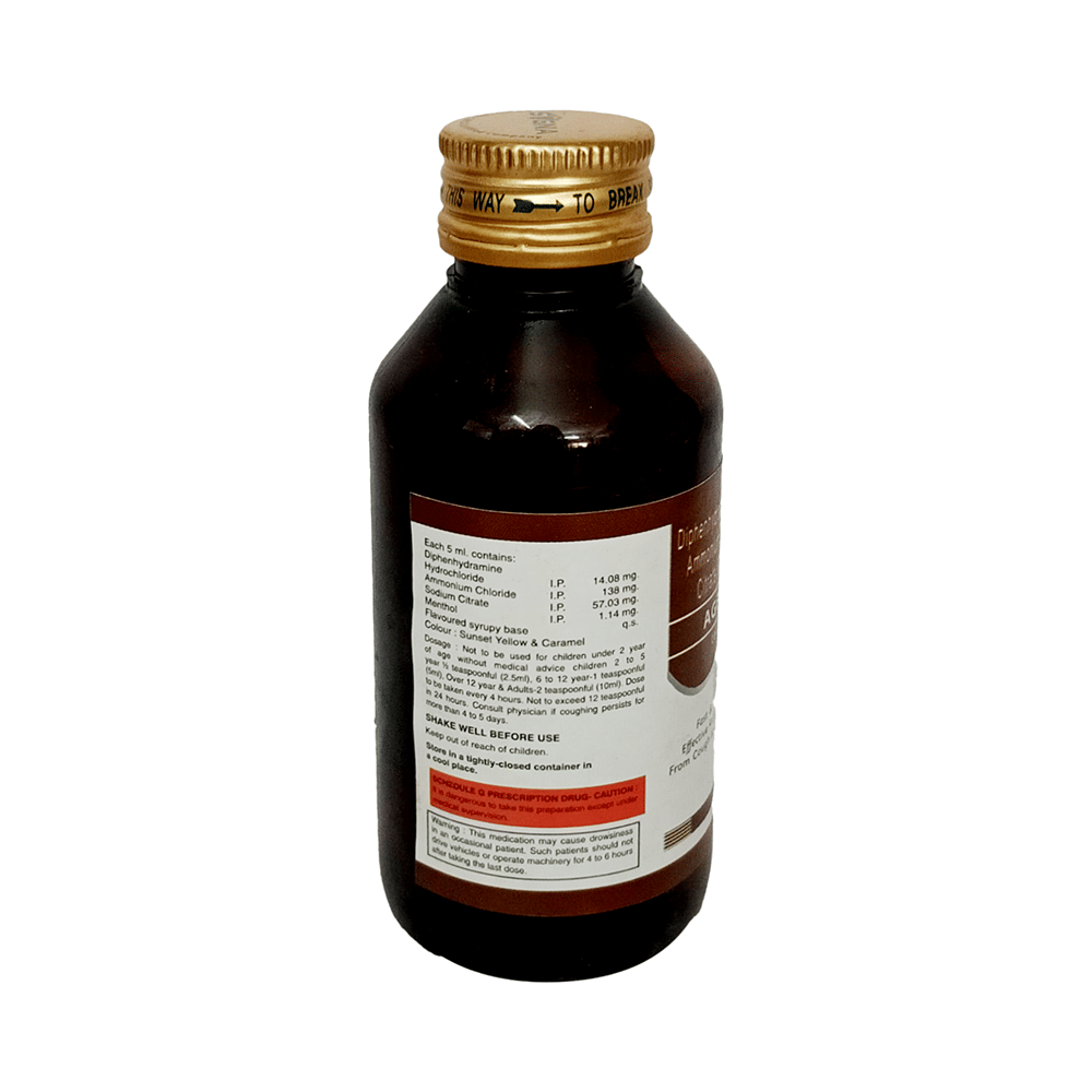 Agedryl Syrup is a combination of four medicines: Ammonium Chloride, Sodium Citrate, Diphenhydramine and Menthol which relieve cough.