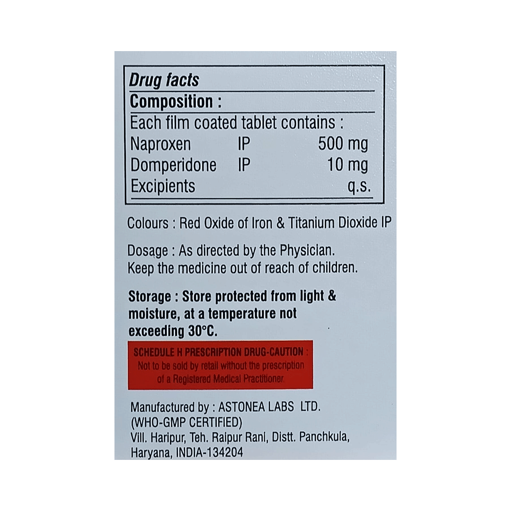 Salt Composition: Naproxen (500mg) + Domperidone (10mg)