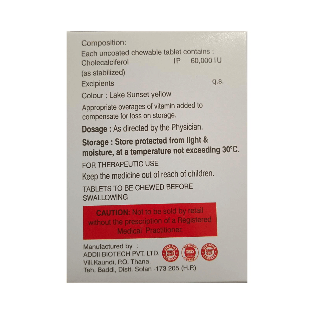Your doctor has prescribed Airacal 60K Chewable Tablet for the treatment of vitamin D3 deficiency.
