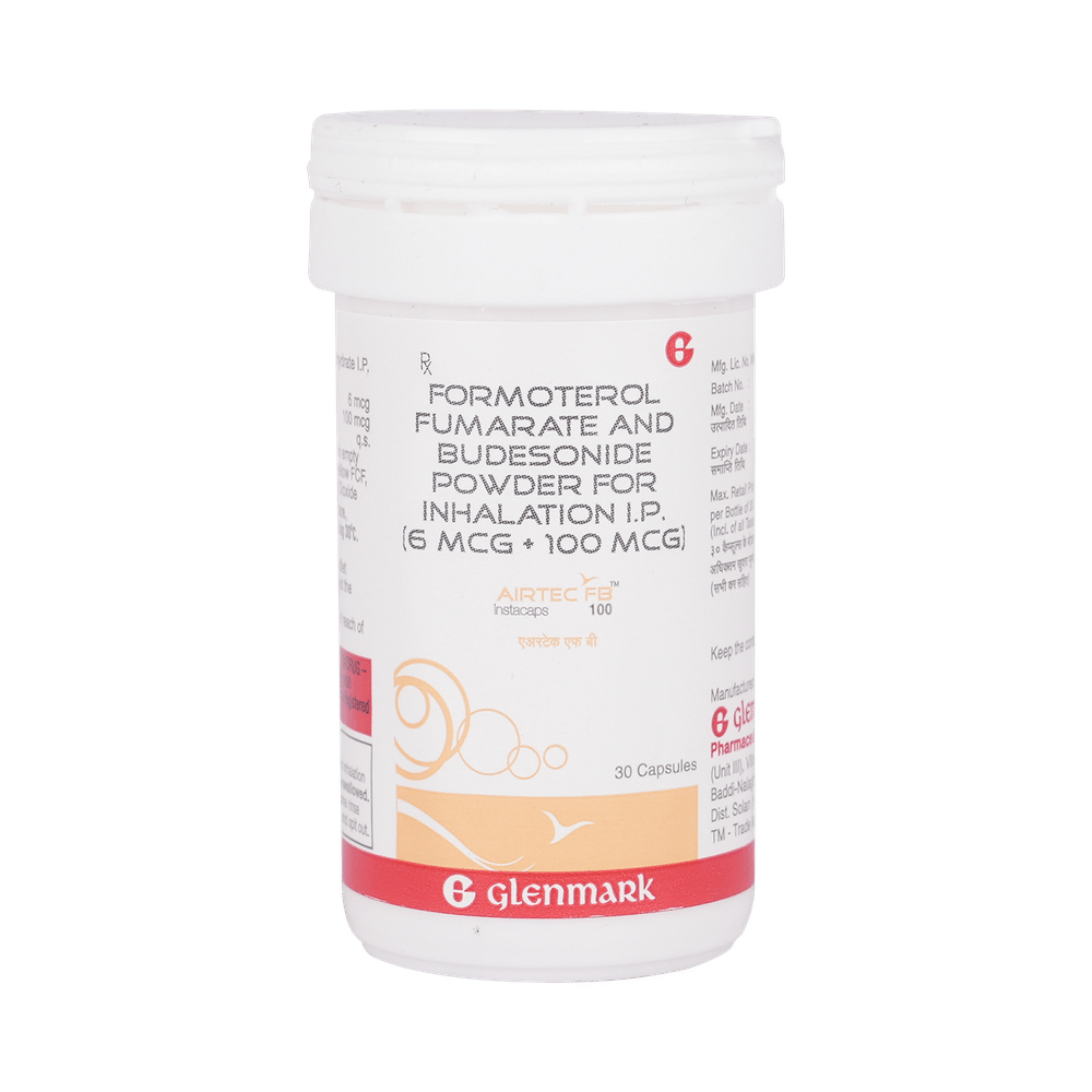 Airtec FB 6mcg/100mcg Capsule is a combination of two medicines: Formoterol and Budesonide. Formoterol is a long-acting bronchodilator which works by relaxing the muscles in the airways and widens the airways. Budesonide is a steroid. It works by stopping the release of certain chemical messengers that cause inflammation (swelling) of the airways. Together, they make breathing easier.