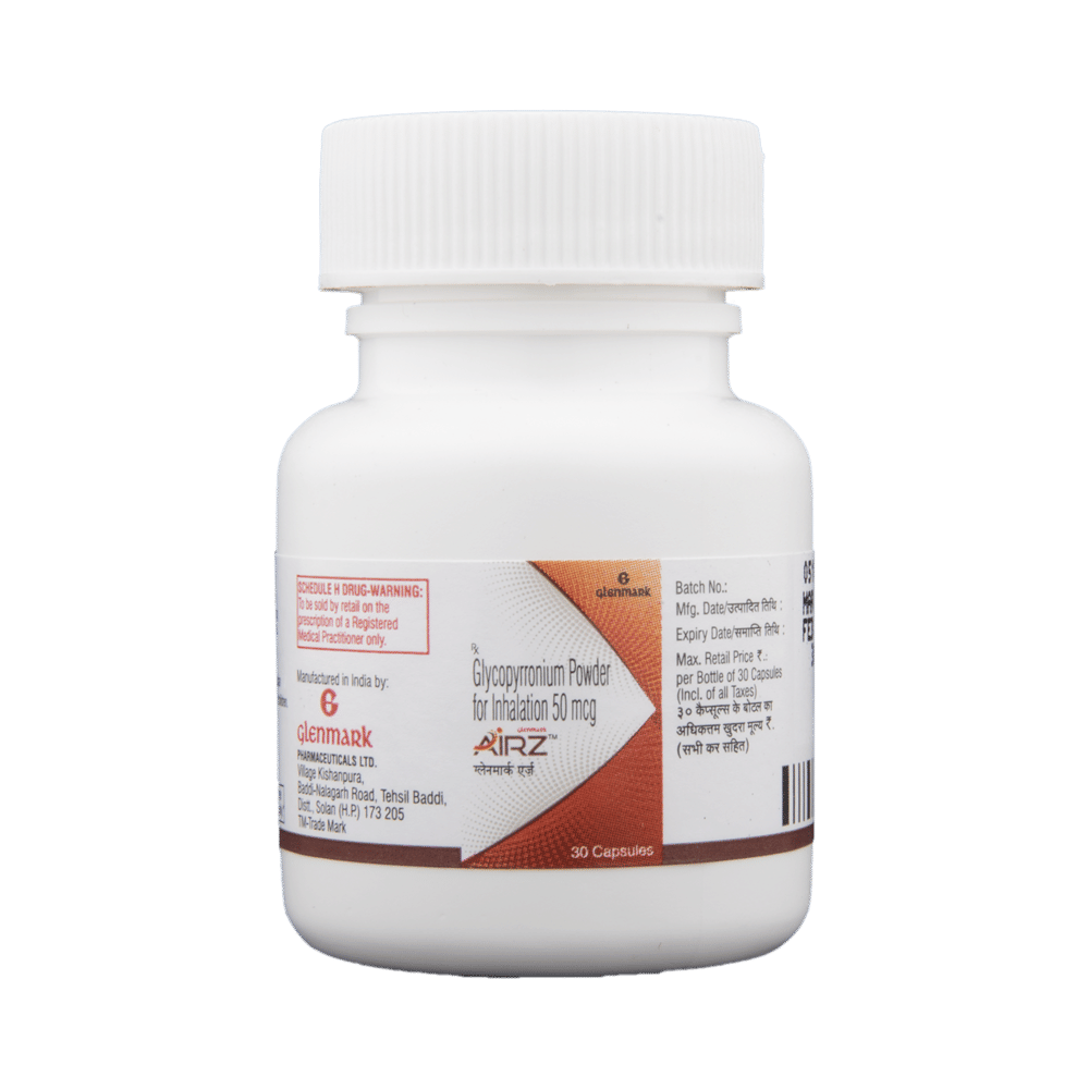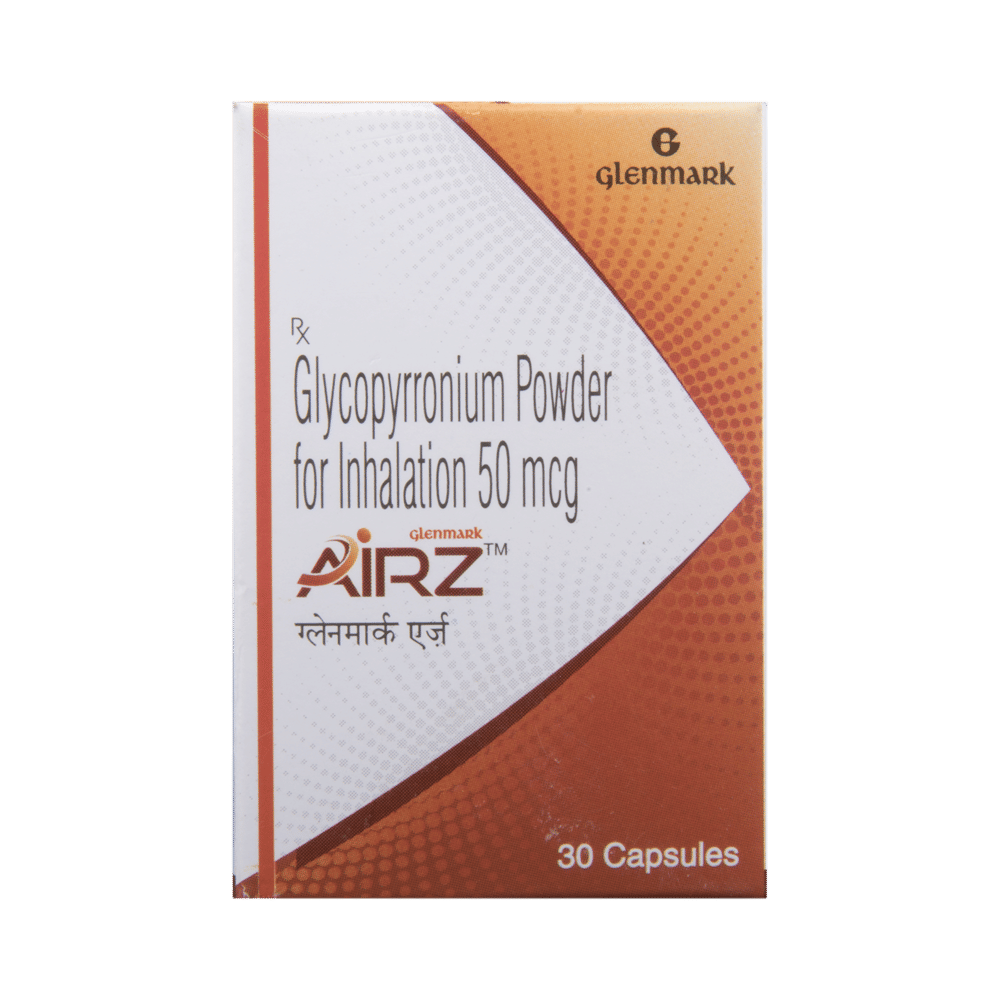 Airz Capsule is used to treat chronic obstructive pulmonary disease (COPD). This medicine helps the muscles around the lungs to stay relaxed and reduces symptoms like coughing, chest tightness, and shortness of breath. Your doctor will tell you how often you need to use Airz Capsule. Take it in the dose and duration instructed by your doctor. The effect of this medicine may be noticeable after a few days but will only reach its maximum after a few weeks. This medicine must be used regularly to be effective, so continue using it even if you do not have any symptoms. If you stop taking it your symptoms of COPD may get worse. It should not be used to relieve sudden breathing problems.The most common side effects are upper respiratory tract infection, inflammation of the throat and nasal passage, breathlessness, and urinary tract infection. If any of these symptoms persist or worsen, talk to your doctor. They may be able to help by adjusting the dosage or by prescribing you an alternate medicine.Do not use this medicine if you have a known history of allergic reactions to any of the ingredients in this product. This medicine may not be suitable for everybody, let your doctor know if you have any preexisting medical conditions. Let your doctor also know about all the medicines you are taking. Pregnant and breastfeeding women should consult their doctors before using this medicine to make sure it is suitable for them.