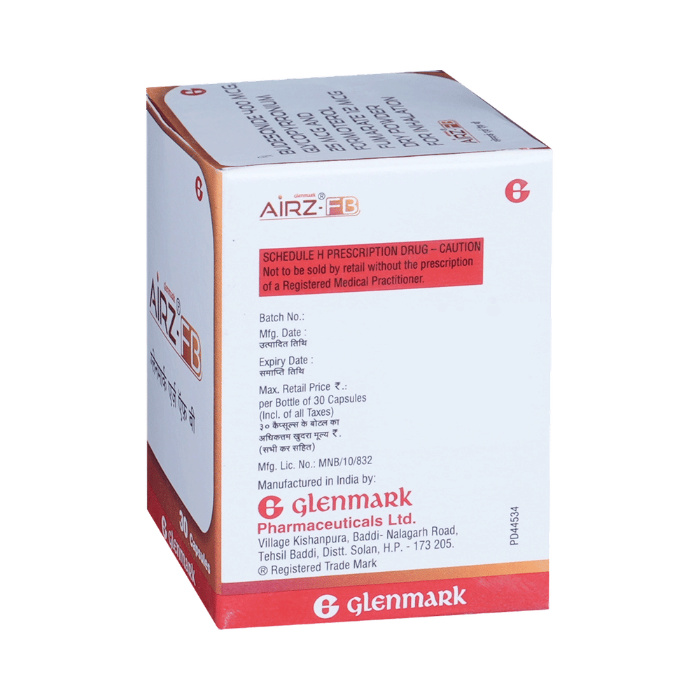 airZ-FB Capsule is a combination of three medicines. It is used in the treatment of chronic obstructive pulmonary disease (COPD). It works in various ways and reduces the symptoms of the disease such as coughing, chest tightness, and shortness of breath. airZ-FB Capsule should be used in the dose and duration as prescribed by your doctor. Use it regularly and as long as your doctor has prescribed it to get maximum benefits from the medicine. Don’t stop using the medicine even if you feel better unless your doctor tells you to. If you stop, your breathing problems could get worse.airZ-FB Capsule is generally safe and effective but some common side effects include dizziness, headache, vomiting, and stuffy nose (nasal congestion). These side effects are usually mild and should gradually improve as your body gets used to this medicine. Let your doctor know if you are bothered by any of this, or if you experience any other side effects which you think are caused by the medicine.Before using airZ-FB Capsule, let your doctor know if you have any preexisting medical conditions. Let your doctor also know all the other medicines you are taking. Additionally, to make sure it is safe for you, tell your doctor if you are pregnant or breastfeeding before taking this medicine. You shouldn’t smoke while on treatment with this medicine. Smoking causes damage to your lungs and will make your condition worse.