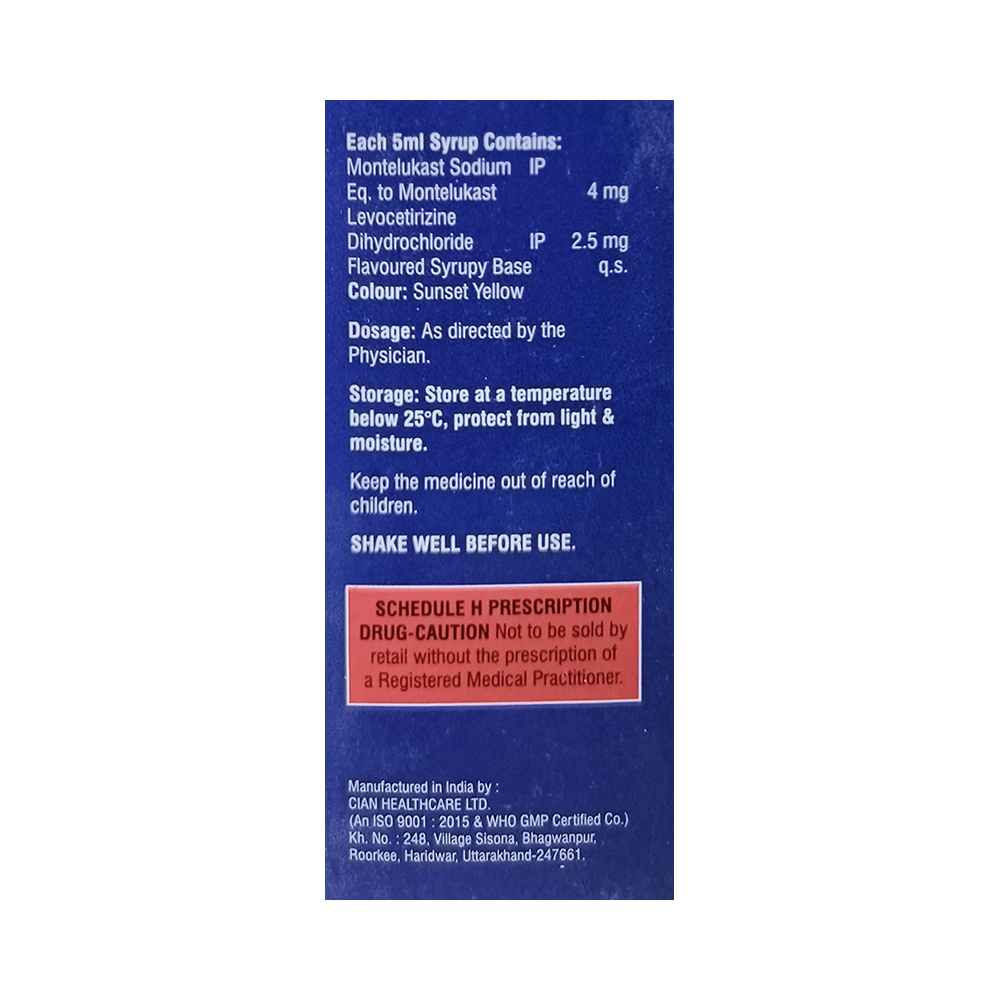 Salt Composition: Levocetirizine (2.5mg/5ml) + Montelukast (4mg/5ml)