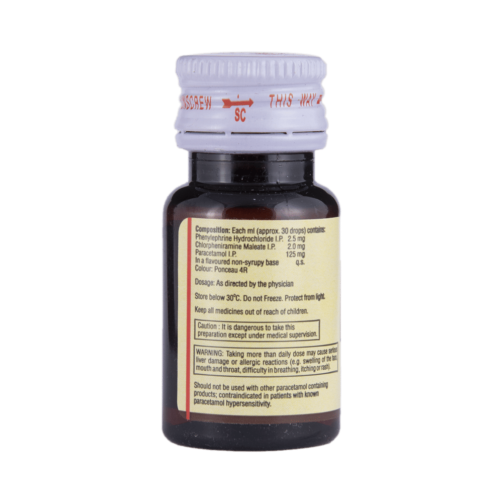 Salt Composition: Chlorpheniramine Maleate (2mg/ml) + Paracetamol (125mg/ml) + Phenylephrine (2.5mg/ml)