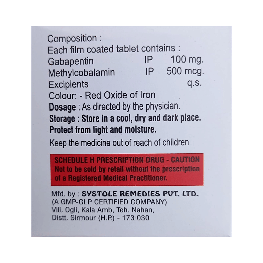 Salt Composition: Gabapentin (100mg) + Methylcobalamin (500mcg)