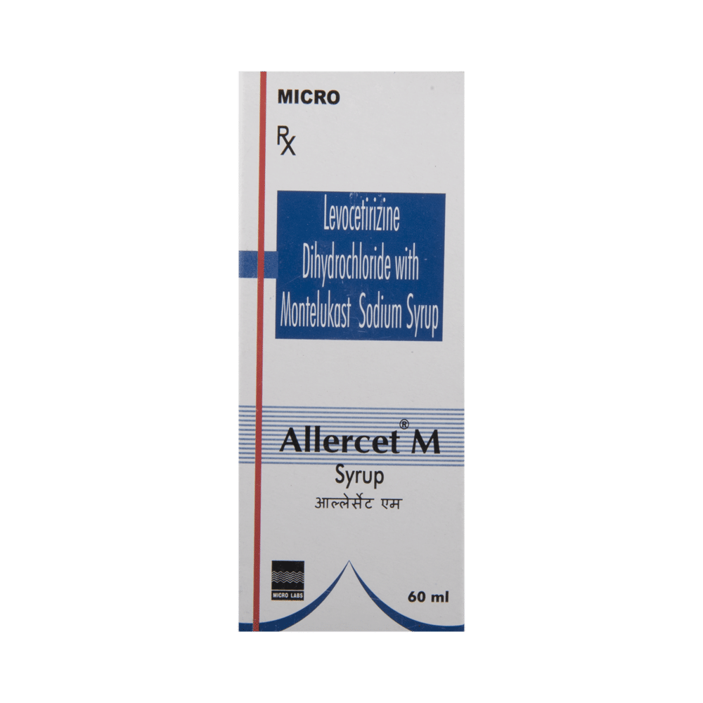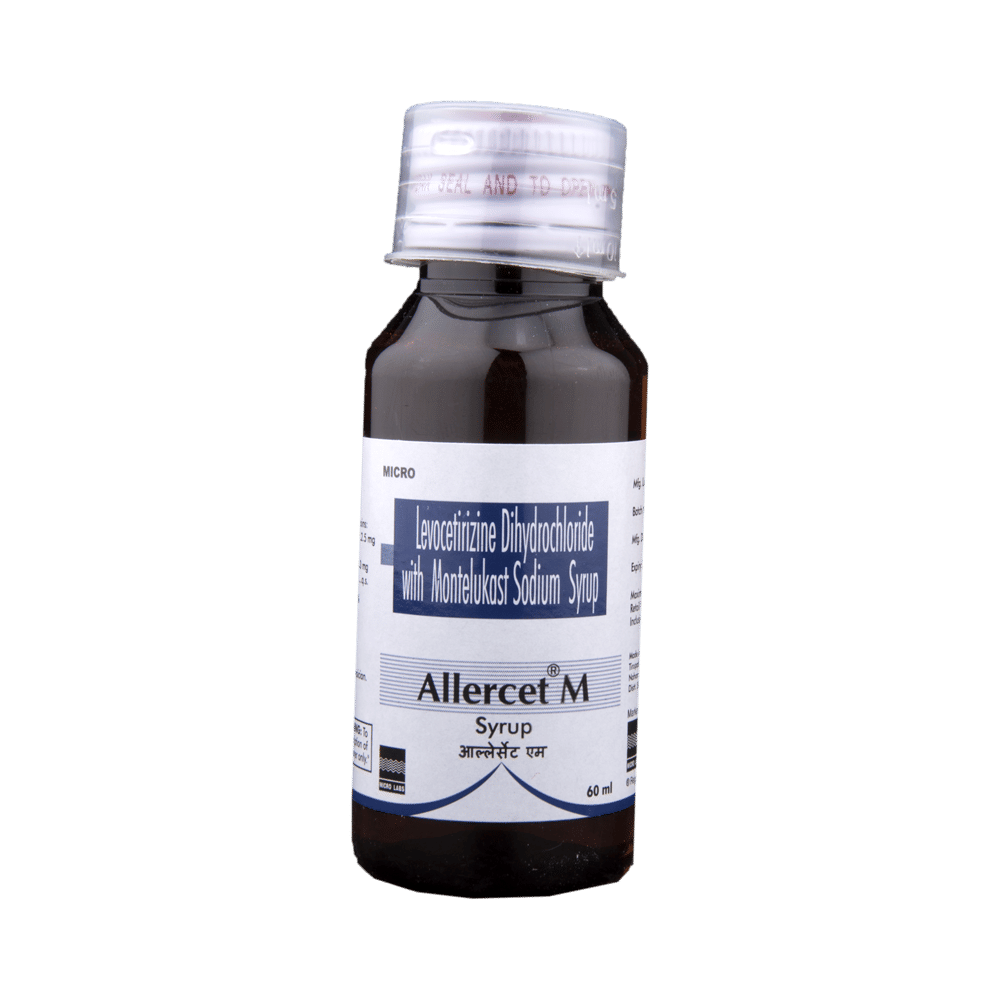 Allercet-M Syrup is commonly prescribed in children to treat symptoms of allergy such as runny nose, sneezing, itching, swelling, congestion, and watery eyes. It may also help in the treatment of asthma and skin allergies. Give this medicine to your child at a fixed time before or after food in the prescribed dose, time, and way. For asthma, prefer giving Allercet-M Syrup in the evening or 2 hours before physical activity. For allergy, it is best to give it either in the morning or in the evening, depending upon the time of onset of symptoms. In case your child has both, prefer giving it in the evening. If your child vomits within 30 minutes of taking this medicine, give the same dose again, but skip it if it’s already time for the next dose.Your child may start to feel better after a few regular doses. However, you must still complete the prescribed dose to ensure maximum benefit. Moreover, stopping the medicine abruptly may worsen your child’s condition. This medicine may cause some minor and temporary side effects like vomiting, diarrhea, nausea, dizziness, dry mouth, rash, and headache. Usually, these episodes subside once your child’s body adapts to the medicine. However, in case these effects persist or start bothering your child, consult your child’s doctor without any delay.Let your child’s doctor know if your child is already taking any medicines. Also, narrate your child’s complete medical history, including any prior episodes of allergy, heart problem, blood disorder, vascular disorders, birth defects, airway obstruction, lung anomaly, skin disorder, liver impairment, and kidney malfunction. This information is critical for dose alterations and in planning your child’s overall treatment.