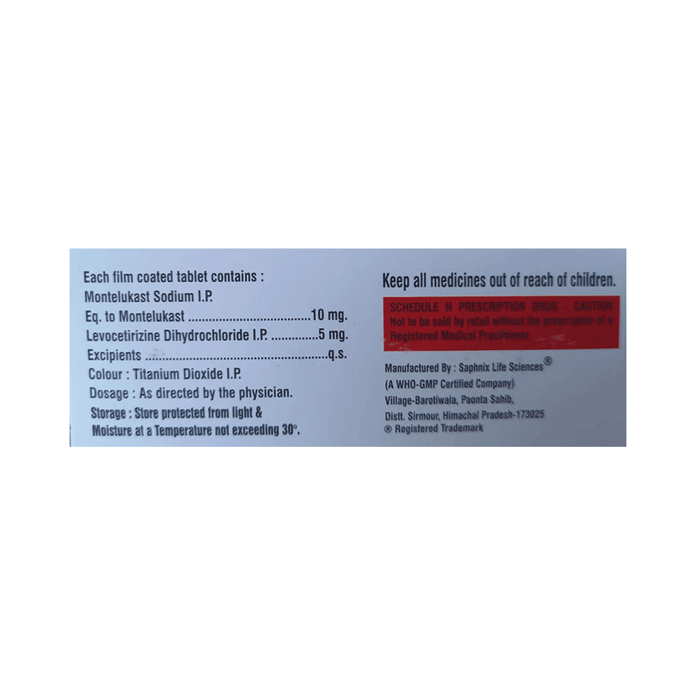 Salt Composition: Levocetirizine (5mg) + Montelukast (10mg)