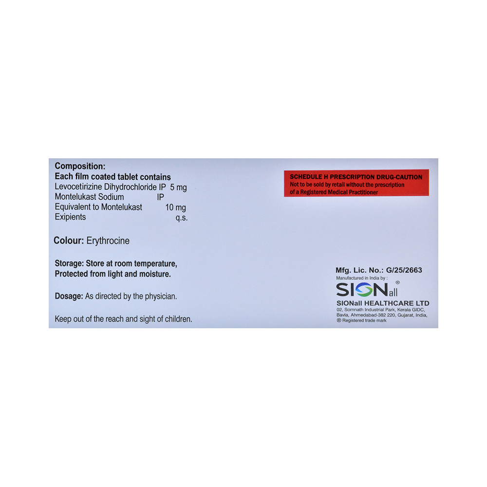 Salt Composition: Levocetirizine (5mg) + Montelukast (10mg)