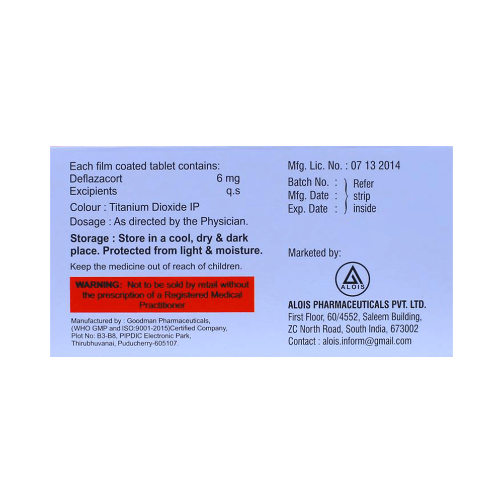 Aloicort 6 Tablet is a corticosteroid. It increases the level of glucocorticoid in the body and works by decreasing the formation of substances that cause inflammation and suppresses immunity to stop self damage to the body by the immune system (auto-immune reactions occurring in organ transplants or cancer).