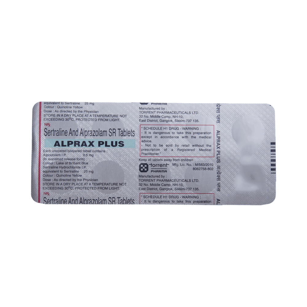 Alprax Plus Tablet SR is a prescription medicine used to treat depression. It is a combination medicine which calms the brain by decreasing the abnormal and excessive activity of the nerve cells. It also increases the levels of some chemical messengers in the brain and improves mood. Alprax Plus Tablet SR is taken with or without food. However, it is advised to take it at the same time each day as this helps to maintain consistent levels of medicine in the body. Take this medicine in the dose and duration advised by your doctor as it has habit-forming potential. If you miss a dose of this medicine, take it as soon as you remember. Finish the full course of treatment even if you feel better. It is important not to stop taking this medicine suddenly as this may cause nausea, stomach upset, flu-like withdrawal symptoms, sleep disturbance and anxiety.Some common side effects of this medicine include nausea, vomiting, diarrhea, confusion, memory impairment, and low sexual desire. It may also cause dizziness and sleepiness. So, do not drive or do anything that requires mental focus until you know how this medicine affects you. It may cause weight gain or weight loss depending upon person to person. To prevent weight gain, you can eat a healthy balanced diet, avoid snacking with high-calorie food and exercise regularly. On the other hand, weight loss can be managed by consulting a dietitian who can help you increase the food portions. It is important to inform your doctor if you develop any unusual changes in mood as it may cause suicidal thoughts.Take caution while taking medicine if you are suffering from liver disease. Your doctor should also know about all other medicines you are taking as many of these may make this medicine less effective or change the way it works. Inform your doctor if you are pregnant, planning pregnancy or breastfeeding.
