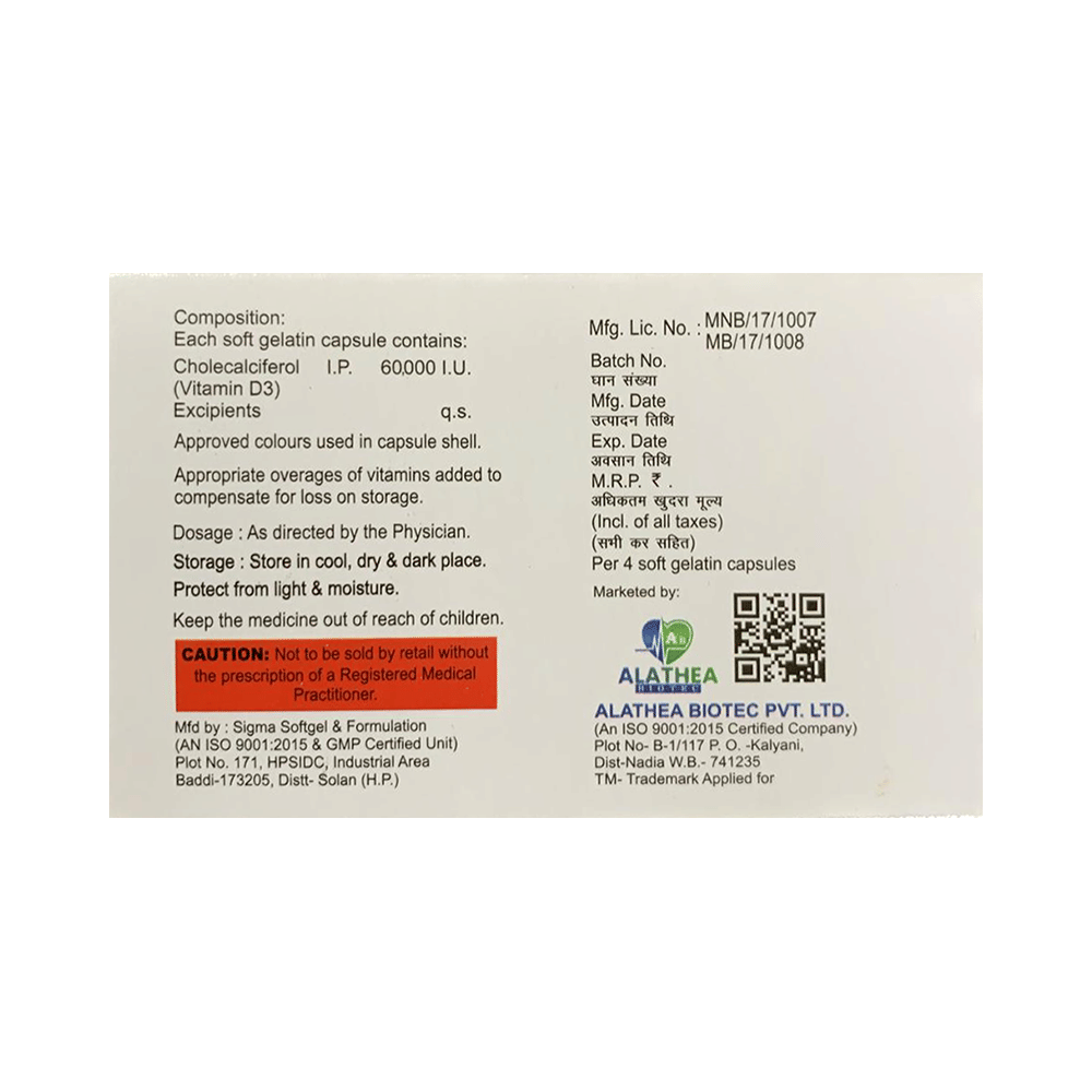 Salt Composition: Vitamin D3 (60000IU)