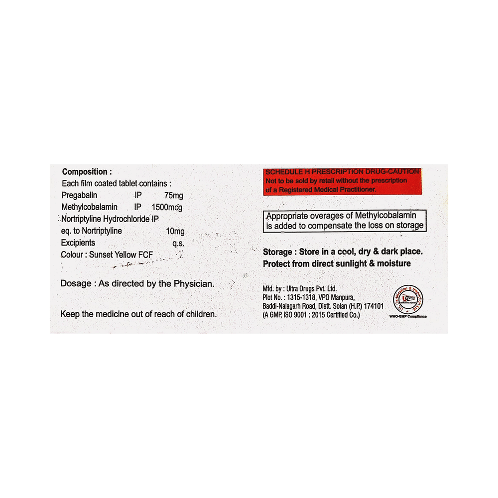 Salt Composition: Pregabalin (75mg) + Nortriptyline (10mg) + Methylcobalamin (1500mcg)
