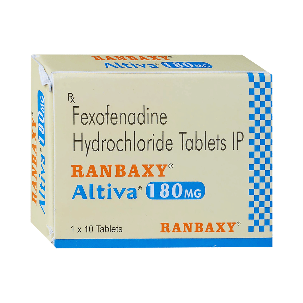 Altiva 180mg Tablet is an anti-allergy medicine used in the treatment of allergic symptoms such as runny nose, congestion or stuffiness, sneezing, itching, swelling, and watery eyes. It also helps treat skin allergies with itching, redness, or swelling. Altiva 180mg Tablet may be taken with or without food, in the dose and duration as advised by the doctor. The dose you are given will depend on your condition and how you respond to the medicine. You should keep taking this medicine for as long as your doctor recommends. Do not stop taking it without consulting your doctor.The most common side effects are headache, drowsiness, dizziness, and nausea. Most of these are temporary and usually resolve with time. Please consult your doctor if any of these side effects do not resolve or persist for a longer duration.Do not self-medicate or recommend your medicine to another person even if you see the similarity in symptoms. Consult your doctor to get the most benefit. Inform your doctor if you are suffering from any problems related to the kidneys, liver, or heart. Pregnant and breastfeeding mothers should not take this medicine without consulting a doctor.
