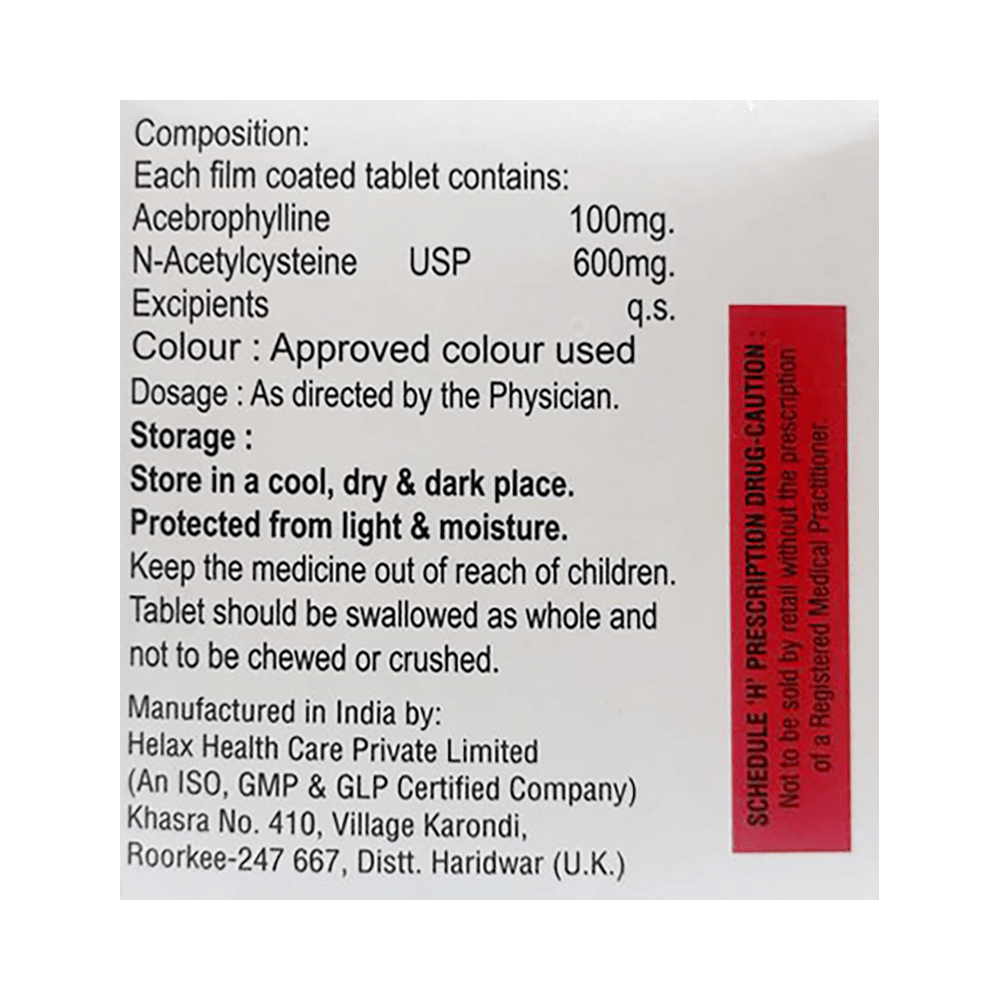 Salt Composition: Acebrophylline (100mg) + Acetylcysteine (600mg)