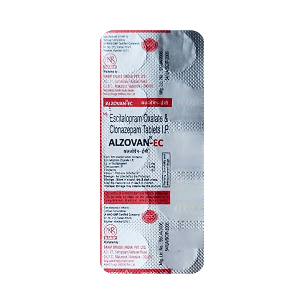 Alzovan-EC Tablet is a prescription medicine used to treat anxiety disorder. It is the combination medicine that calms the brain by decreasing the abnormal and excessive activity of the nerve cells. It also works by increasing the level of a chemical messenger in the brain which improves mood. Alzovan-EC Tablet can be taken with or without food. However, it is advised to take it at the same time each day as this helps to maintain a consistent level of medicine in the body. Take this medicine in the dose and duration advised by your doctor as it has habit-forming potential. If you miss a dose of this medicine, take it as soon as you remember. Finish the full course of treatment even if you feel better. It is important not to stop taking this medicine suddenly as it may cause withdrawal symptoms.Some common side effects of this medicine include delayed ejaculation, low sexual desire, vomiting, memory impairment, depression, and confusion. It may also cause dizziness and sleepiness. So, do not drive or do anything that requires mental focus until you know how this medicine affects you. It may cause weight gain or weight loss depending upon person to person. To prevent weight gain, you can eat a balanced diet and exercise regularly. On the other hand, weight loss can be prevented by increasing food portions in your diet. It is important to inform your doctor if you develop any unusual changes in mood as it can cause suicidal thoughts.Take caution while taking medicine if you are suffering from liver disease. Your doctor should also know about all other medicines you are taking as many of these may make this medicine less effective or change the way it works. Inform your doctor if you are pregnant, planning pregnancy or breastfeeding.
