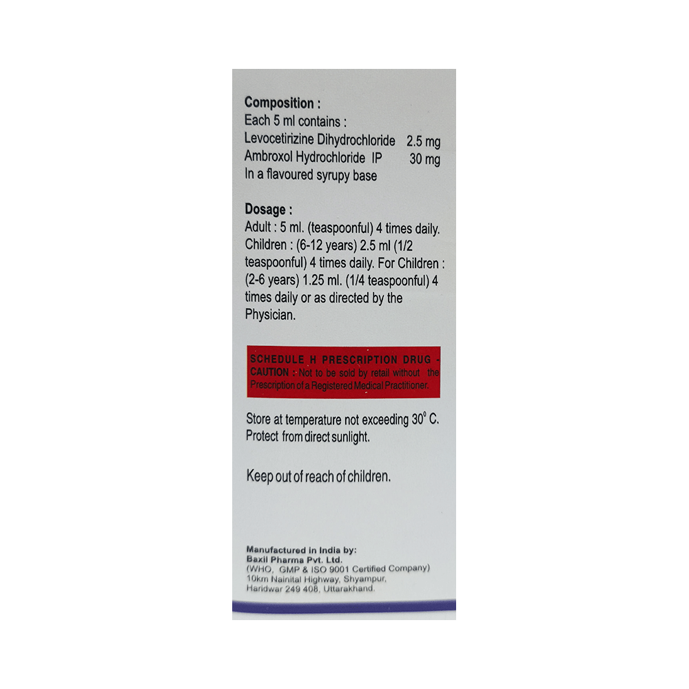Salt Composition: Levocetirizine (2.5mg/5ml) + Ambroxol (30mg/5ml)