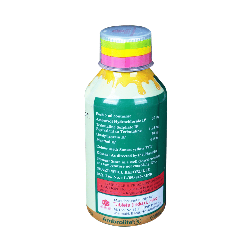 Ambrolite-S Expectorant is a combination of four medicines: Ambroxol, Guaifenesin, Menthol and Terbutaline.