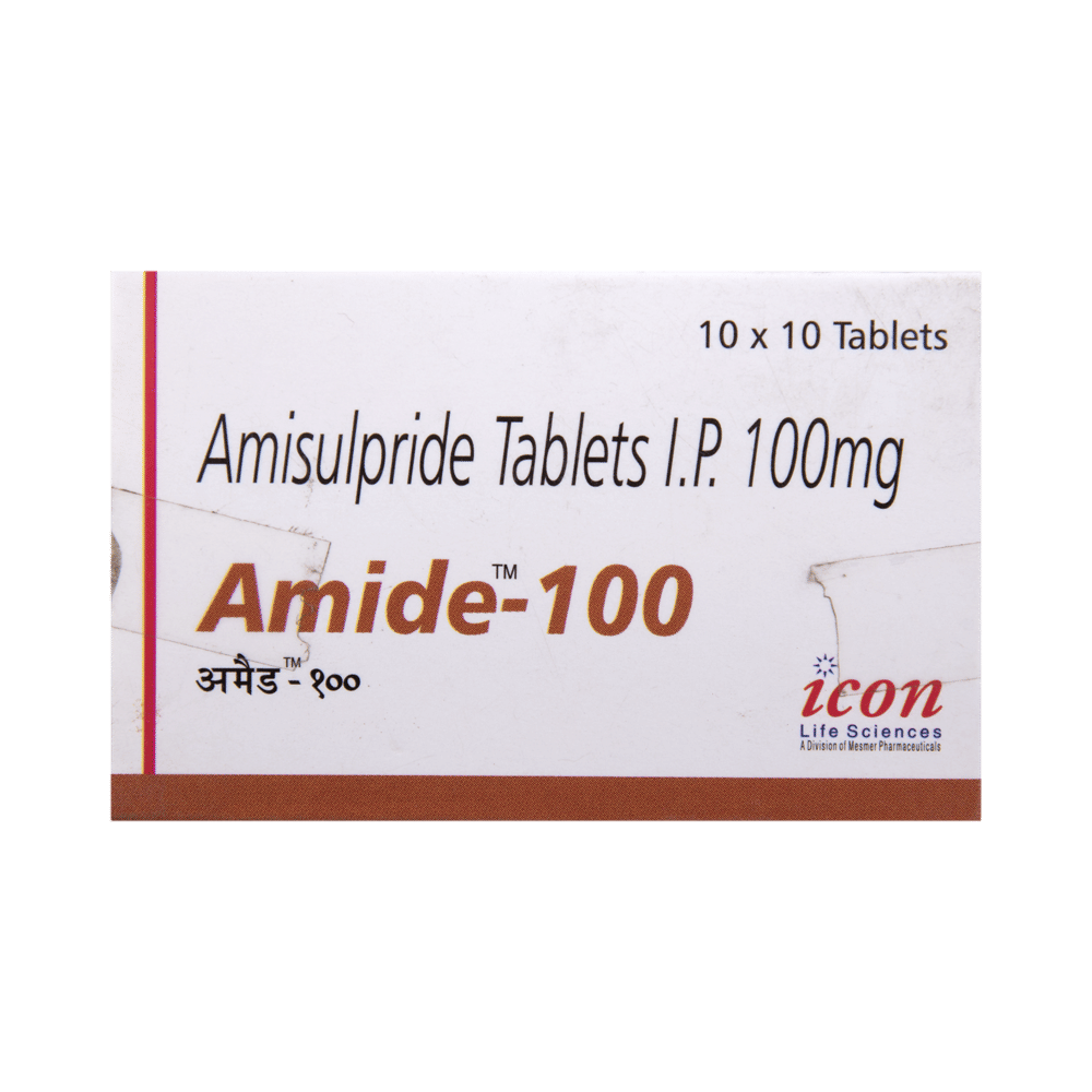 Amide 100 Tablet is an atypical antipsychotic. It works by modulating the action of certain chemical messengers in the brain that affect thoughts.