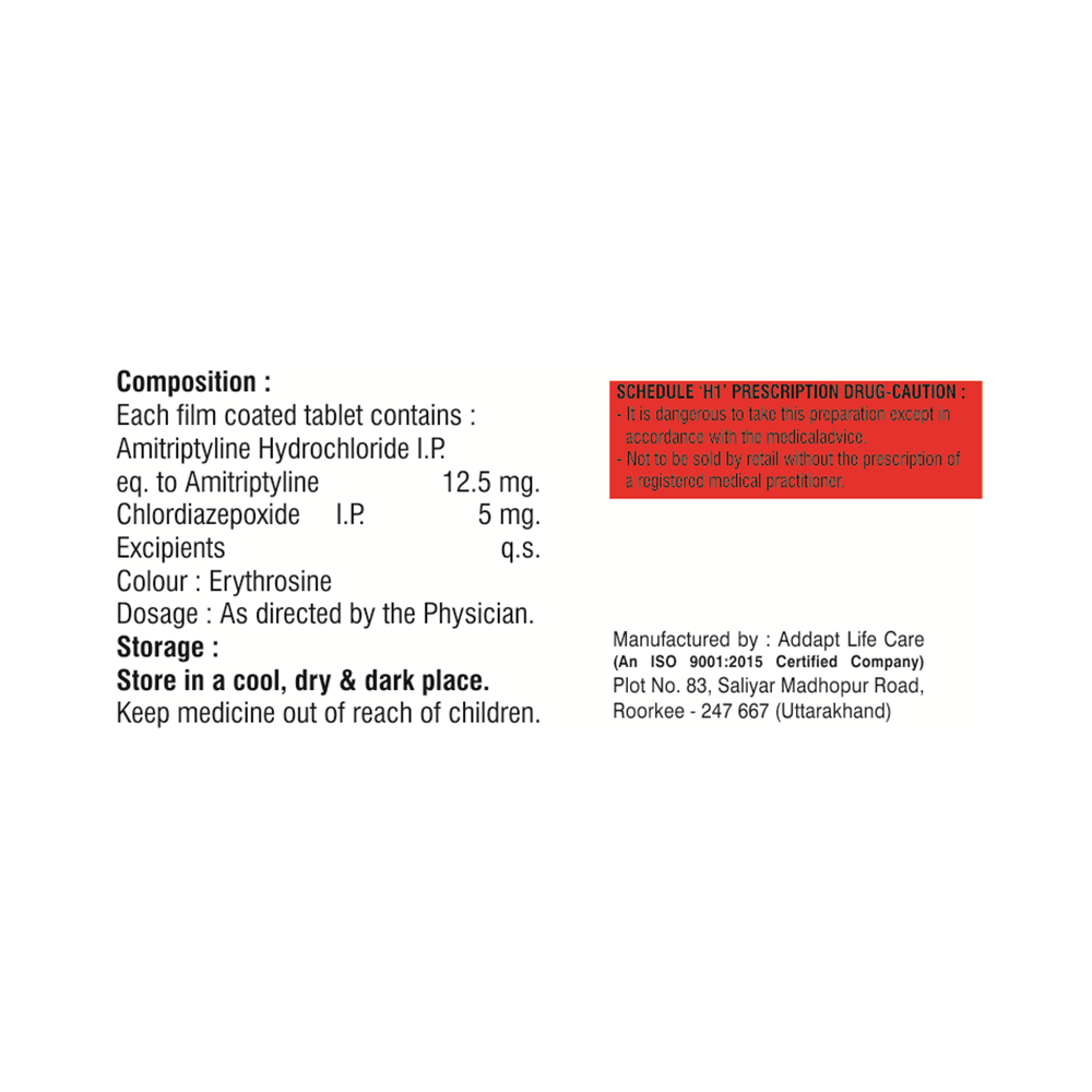 Salt Composition: Amitriptyline (12.5mg) + Chlordiazepoxide (5mg)