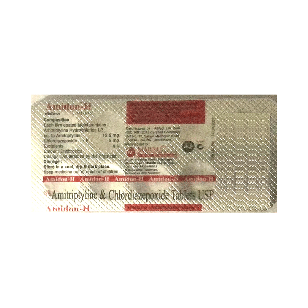 Amidon-H Tablet is a combination of two medicines. It is used in the treatment of depression associated with anxiety. It helps in regulating mood and to reduce anxiety. Amidon-H Tablet is taken with or without food. However, it is advised to take it at a fixed time each day to maintain a consistent level of medicine in the blood. In case you miss a dose of this medicine, take it as soon as you remember. Never skip any dose and finish the full course of treatment even if you feel better. It is important that this medication is not stopped suddenly without talking to the doctor as it may worsen your symptoms. Taking this medicine for a long time may require regular monitoring of blood and liver functions.Some common side effects of this medicine include constipation, difficulty in urination, weight gain, confusion, orthostatic hypotension (sudden lowering of blood pressure on standing). This medicine may cause weight loss. In case of losing weight, consult a dietitian for dietary supplements or try to increase your food portion. Most of the common side effects tend to be mild. Your doctor may be able to suggest ways of preventing or reducing side effects if they bother you or do not go away. Serious side effects are rare. Remember to inform your doctor if you develop any unusual changes in mood as it may lead to suicidal thoughts.Take caution while taking medicine if you are suffering from liver disease. Your doctor should also know about all other medicines you are taking as many of these may make this medicine less effective or change the way it works. Inform your doctor if you are pregnant, planning pregnancy or breastfeeding.