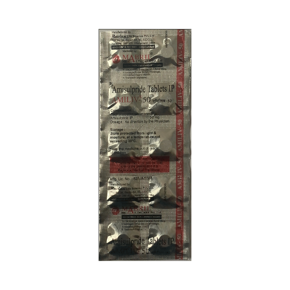 Amiliv 50 Tablet is an atypical antipsychotic. It works by modulating the action of certain chemical messengers in the brain that affect thoughts.