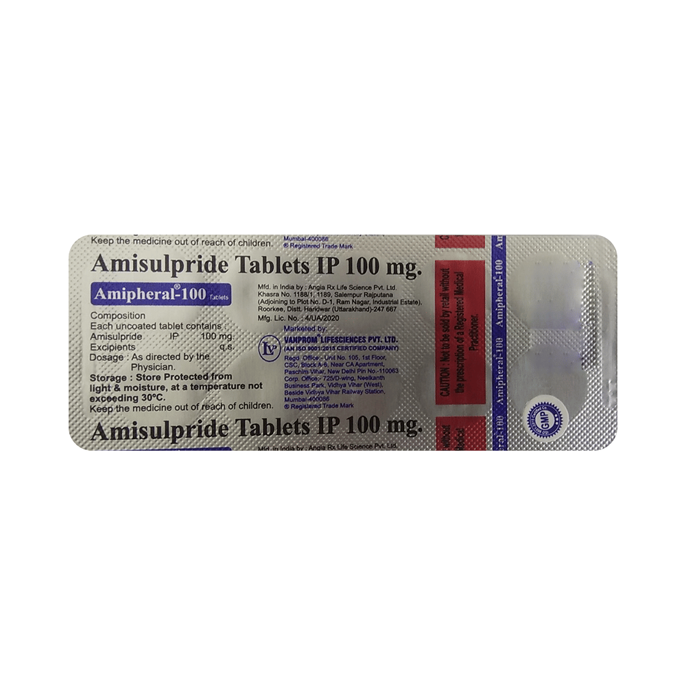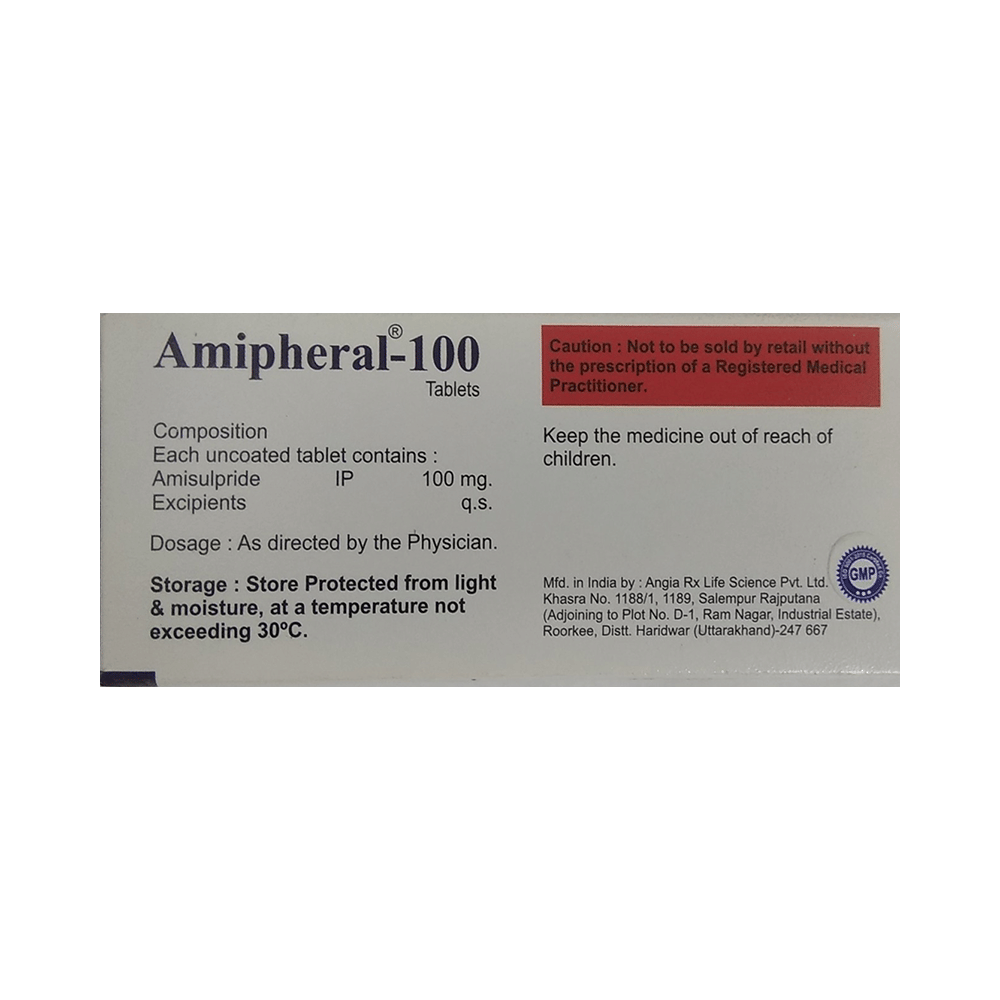 Amipheral 100mg Tablet is an atypical antipsychotic. It works by modulating the action of certain chemical messengers in the brain that affect thoughts.
