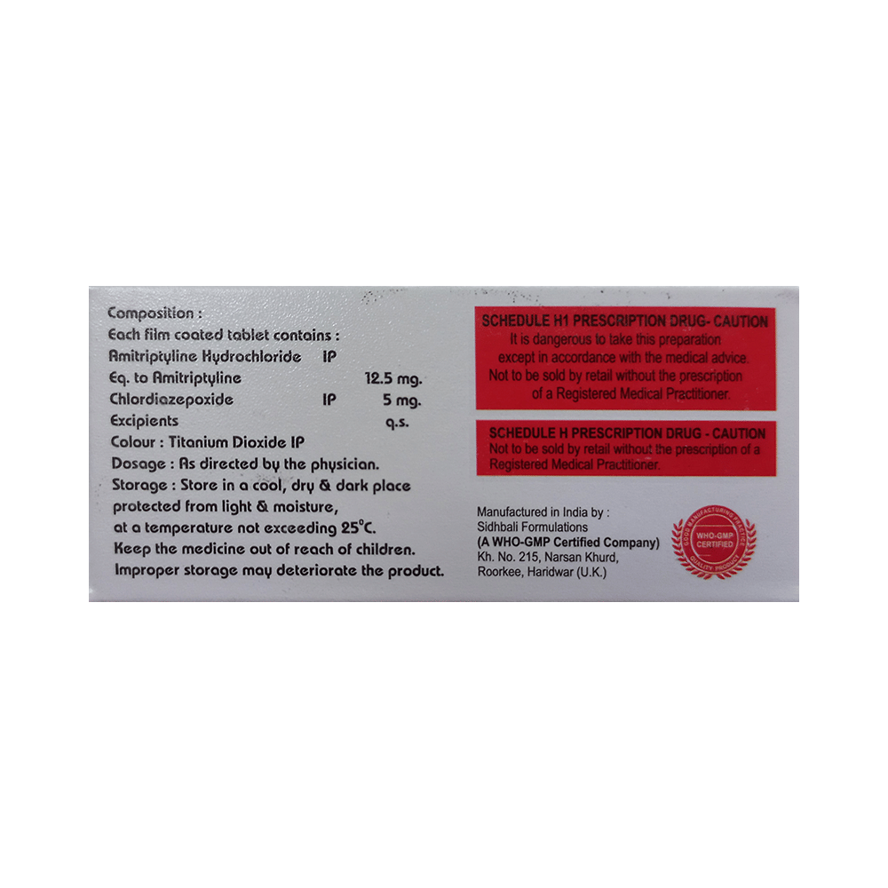 Salt Composition: Amitriptyline (12.5mg) + Chlordiazepoxide (5mg)