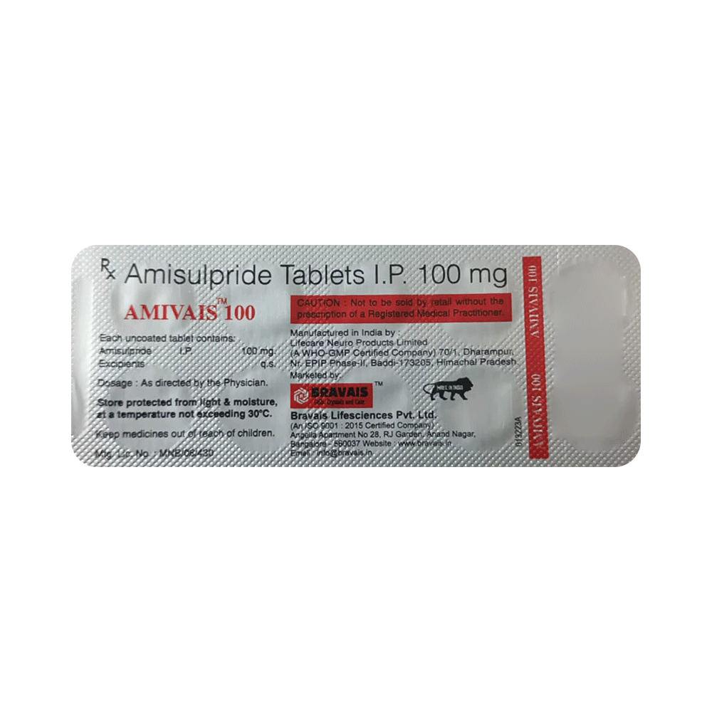 Amivais 100 Tablet is an atypical antipsychotic. It works by modulating the action of certain chemical messengers in the brain that affect thoughts.