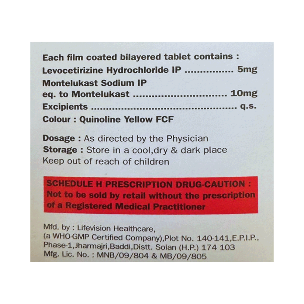 Salt Composition: Levocetirizine (5mg) + Montelukast (10mg)