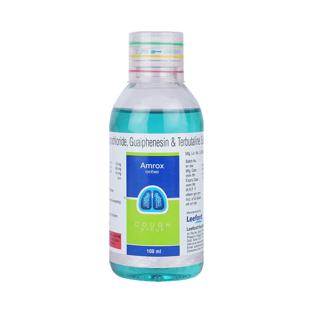 Amrox Syrup effectively treats wet cough (cough with mucus) in children. It helps in thinning the mucus by increasing its water content. This relieves throat irritation and clears congestion, enabling easy breathing in your child. Give Amrox Syrup to your child orally, with or without food. Give it with food to reduce the chances of stomach upset. You may be required to give this medicine to your child for a few days to weeks, depending upon your child’s clinical condition and severity of the illness. Do not stop the medication abruptly by yourself, even if your child starts to feel better. Continue the medicine until the prescribed course is complete. Do not give more than the prescribed dose for fast relief as it may cause unwanted effects and worsen your child’s condition.If your child vomits soon after taking Amrox Syrup, help the child calm down and repeat the same dose. Skip the dose if it is time for the next dose. Do not overdose to catch up for the missed one. Do not give this medicine to your child for the long term without consulting your child’s doctor. Check the medicine label thoroughly and never combine this medicine with other cold and flu medicines as that may lead to side effects.Amrox Syrup may have some common and temporary side effects. These may include excessive salivation, fatigue, headache, dizziness, nausea, vomiting, diarrhea, stomach discomfort, irregular heartbeat, rash, tremors, and numbness or tingling sensation in the hands or feet. In case of worrisome episodes, call your child’s doctor right away.Narrate your child’s complete medical history, including any previous episode of respiratory illness, allergy, heart problems, blood disorders, birth defects, airway obstruction, lung anomaly, sinus issues, liver impairment, and kidney malfunction. This information is critical for dose alterations and for planning your child’s overall treatment.