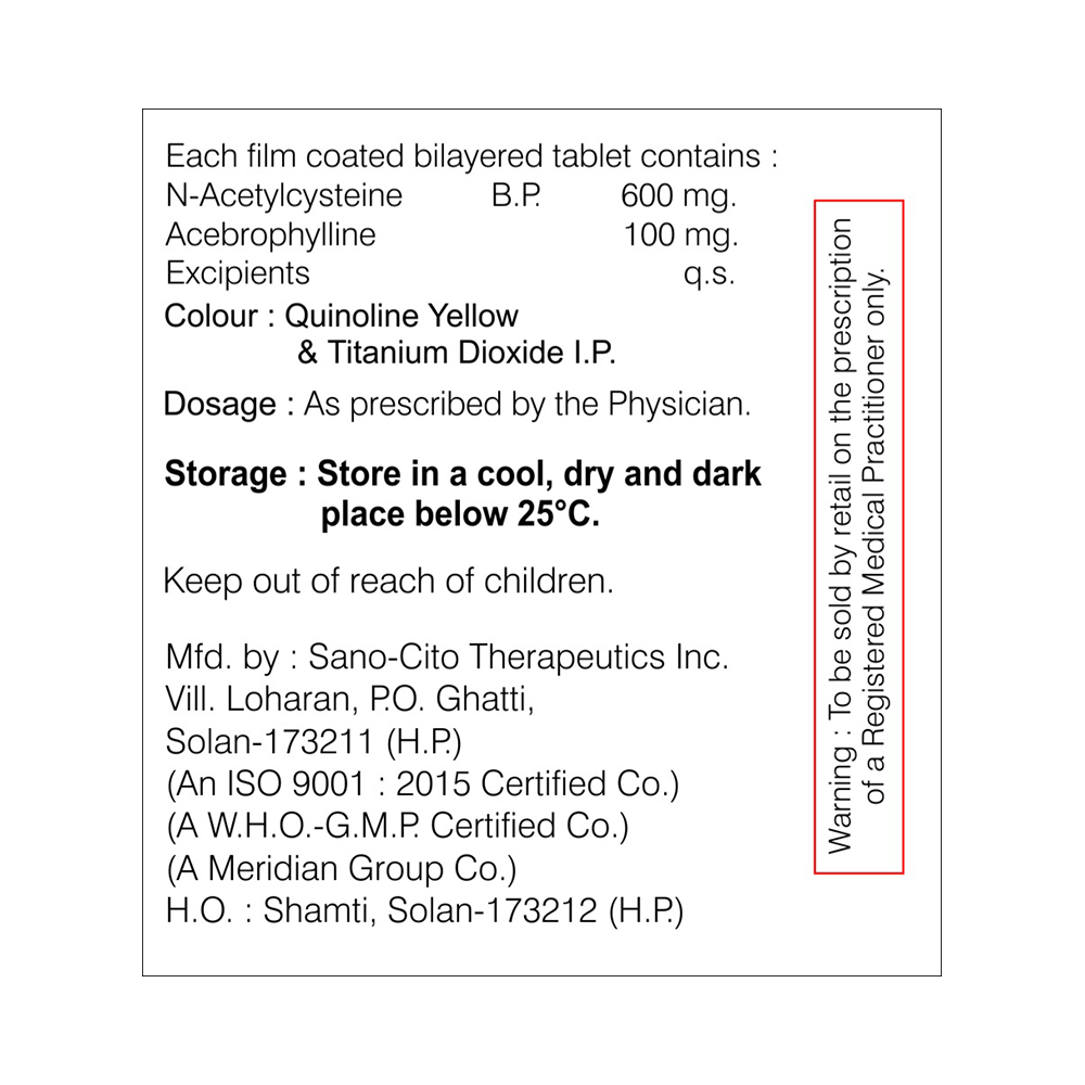 Salt Composition: Acebrophylline (100mg) + Acetylcysteine (600mg)