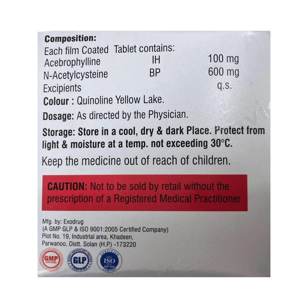 Salt Composition: Acebrophylline (100mg) + Acetylcysteine (600mg)