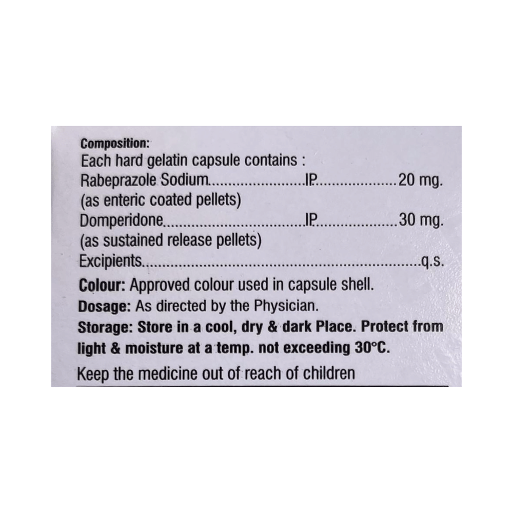 Salt Composition: Domperidone (30mg) + Rabeprazole (20mg)
