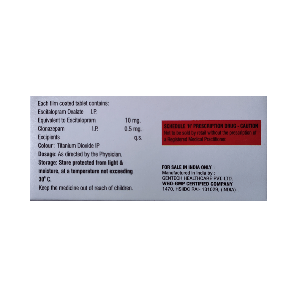 Salt Composition: Clonazepam (0.5mg) + Escitalopram Oxalate (10mg)